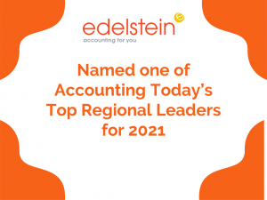 Edelstein is proud to announce that we have been named as a Regional Leader for 2021 by Accounting Today. The list consists of 19 firms in New England in which Edelstein was ranked #10, based on revenue. Last year, we held that same rank. We are extremely proud to once again be included in such great company.