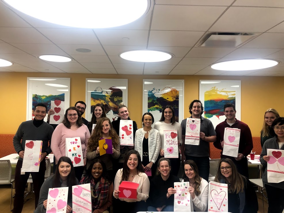 Last Friday, Building Impact came to Edelstein for an in office community service event. We volunteered our time to support youth mental health by assembling Valentine’s Day card making kits for children and adolescents cared for by Franciscan Children’s Mental Health Programs. We made cards and decorated bags filled with all the materials needed for them to create their own Valentine’s Day cards. We also had fun making Valentine Mad Libs!