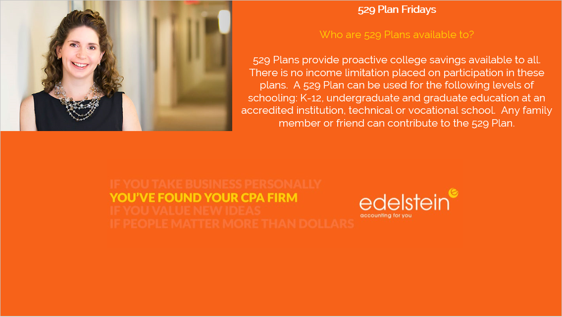 Last week, we introduced 529 Plan Fridays, in which Tax Partner, Kate Rooney will answer one question each week about 529 Plans. In January, Kate presented on this topic which generated a Q&A session specifically about 529 Plans.