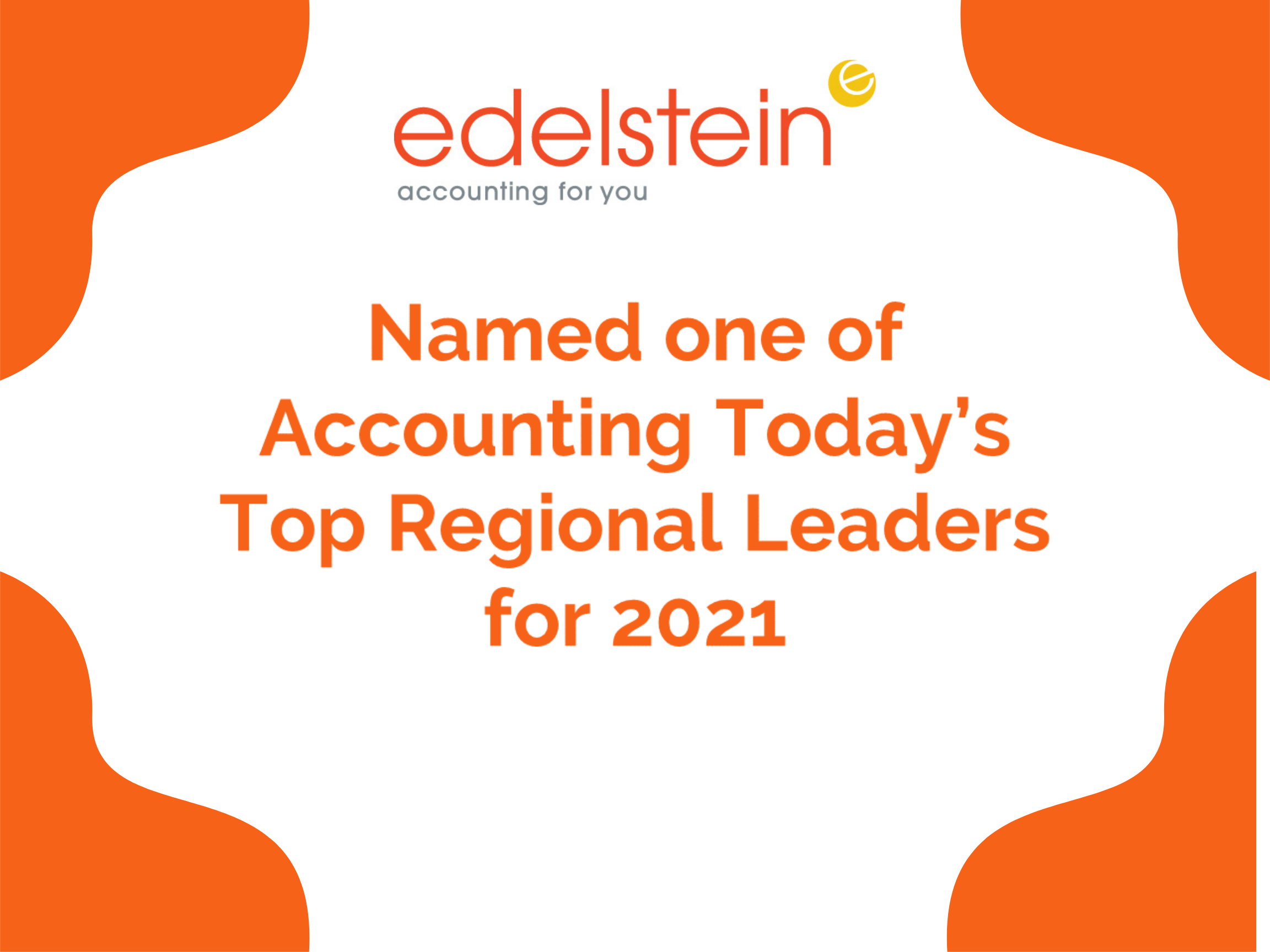 Edelstein is proud to announce that we have been named as a Regional Leader for 2021 by Accounting Today. The list consists of 19 firms in New England in which Edelstein was ranked #10, based on revenue. Last year, we held that same rank. We are extremely proud to once again be included in such great company.