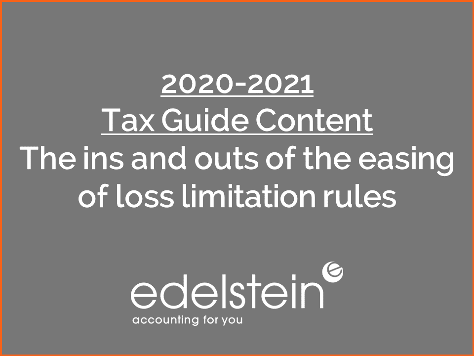 Emerging Tax Alert- Year-end tax planning strategies must take business turbulence into account https://www.edelsteincpa.com/emerging-tax-alert-year-end-tax-planning-strategies-must-take-business-turbulence-into-account/?utm_source=rss&utm_medium=rss&utm_campaign=emerging-tax-alert-year-end-tax-planning-strategies-must-take-business-turbulence-into-account Mon, 26 Oct 2020 14:41:53 +0000 https://www.edelsteincpa.com/?p=5471 Election years often lead to uncertainty for businesses, but 2020 surely takes the cake when it comes to unpredictability. Amid the chaos of the COVID-19 pandemic, the resulting economic downturn and civil unrest, businesses are on their yearly search for ways to minimize their tax bills — and realizing that some of the typical approaches aren’t necessarily well-suited for this year. On the other hand, several new opportunities have arisen thanks to federal tax relief legislation.