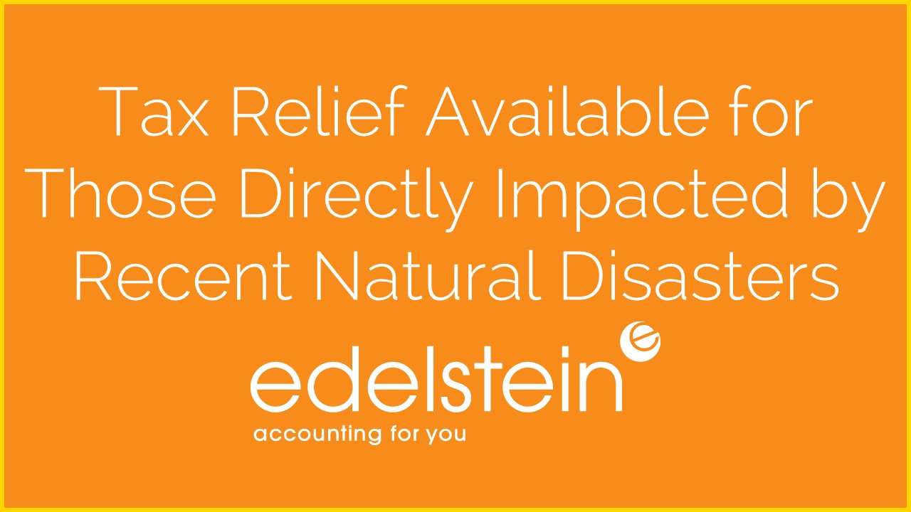 Relief for those impacted by recent natural disasters https://www.edelsteincpa.com/relief-for-those-impacted-by-recent-natural-disasters/?utm_source=rss&utm_medium=rss&utm_campaign=relief-for-those-impacted-by-recent-natural-disasters Fri, 02 Oct 2020 15:20:11 +0000 https://www.edelsteincpa.com/?p=5391 Have you been impacted by recent natural disasters like Hurricane Sally or the wildfires in California and Oregon? Depending on your location, you may qualify for tax relief and we encourage you to take a look at what the IRS has shared.