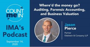 Jason Pierce on Institute of Management Accountants Podcast https://www.edelsteincpa.com/jason-pierce-on-institute-of-management-accountants-podcast/?utm_source=rss&utm_medium=rss&utm_campaign=jason-pierce-on-institute-of-management-accountants-podcast Tue, 15 Sep 2020 13:32:30 +0000 https://www.edelsteincpa.com/?p=5320 Released yesterday, Business Valuation & Forensic Accounting Partner, Jason Pierce, was on the Institute of Management Accountants’ podcast. This episode of Count Me In is titled, “Where’d the money go? Auditing, Forensic Accounting, and Business Valuation.” Jason talked about how he got into this specialization and how all his accounting skills have been transferable. He also discussed the importance of data and data analytics when it comes to completing his assignments.