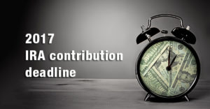 Tax-advantaged retirement plans like IRAs allow your money to grow tax-deferred — or, in the case of Roth accounts, tax-free. The deadline for 2017 contributions is April 17, 2018. Deductible contributions will lower your 2017 tax bill, but even nondeductible contributions can be beneficial.